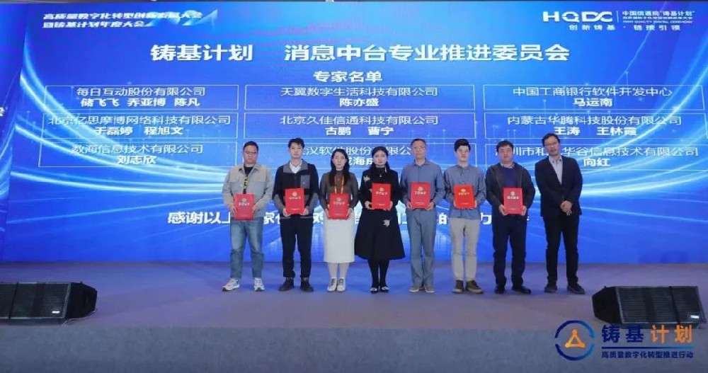 數海信息榮獲中國信通院CAICT鑄基計劃消息中台專家組成員及標准參與單位